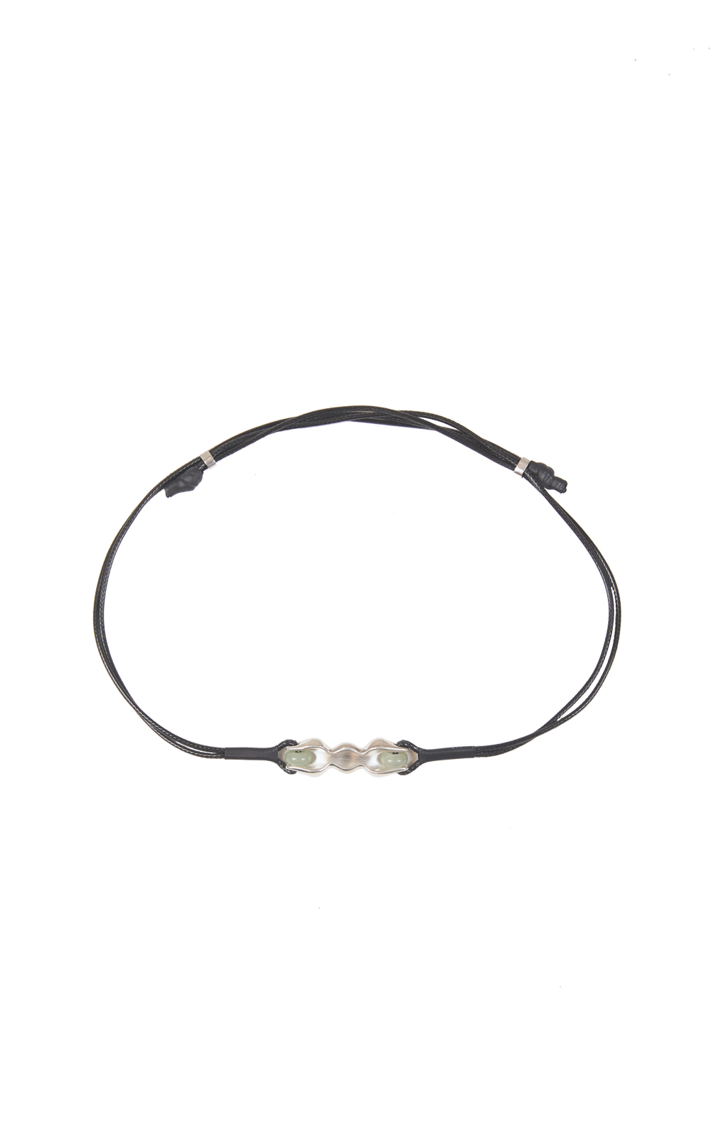 ADJUSTABLE CORD CHOKER WITH SILVER HARDWARE AND BEADS.