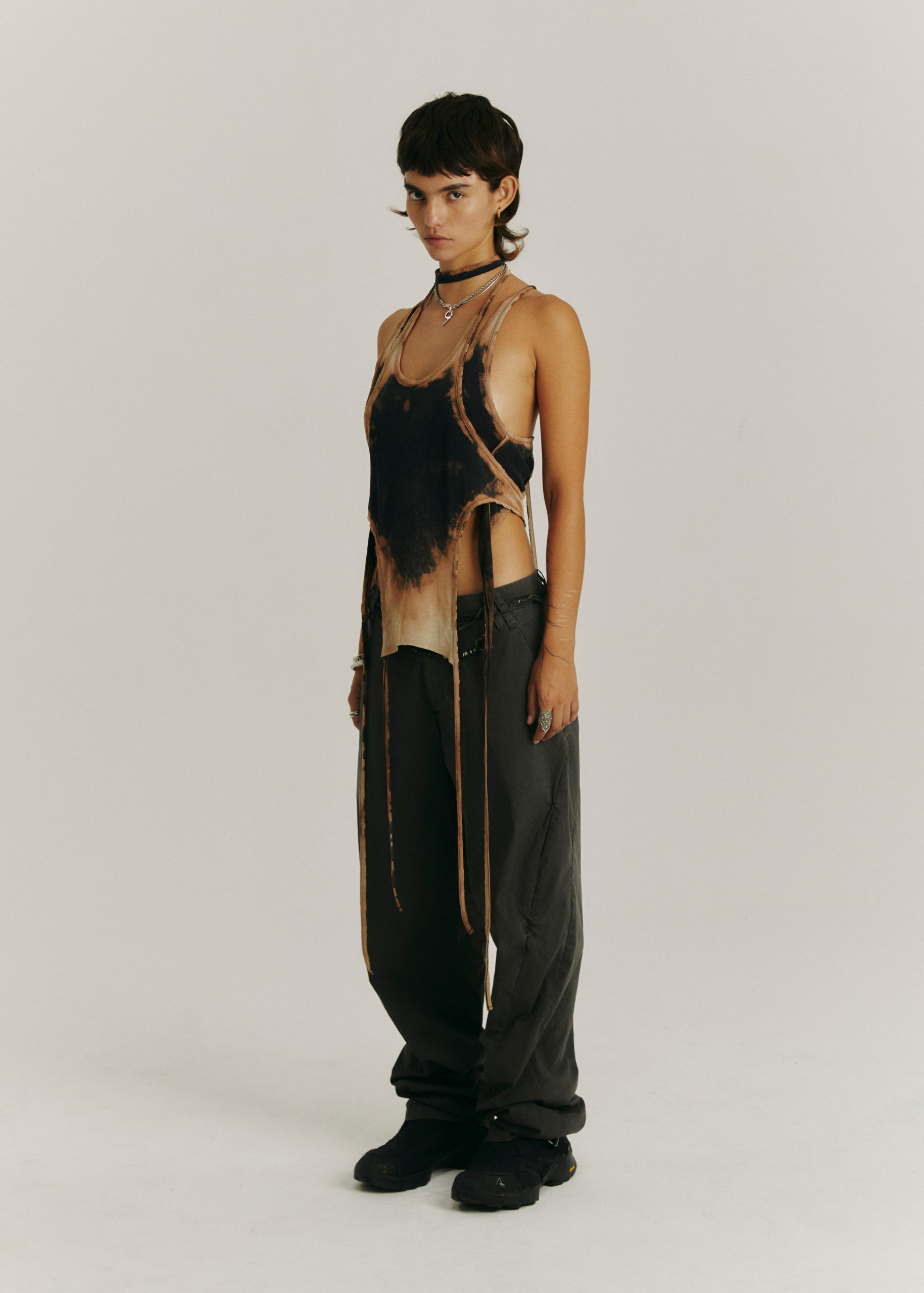 HAND-DYED, MULTI-LAYER HALTER TOP, CAN BE WORN SEPARATELY.