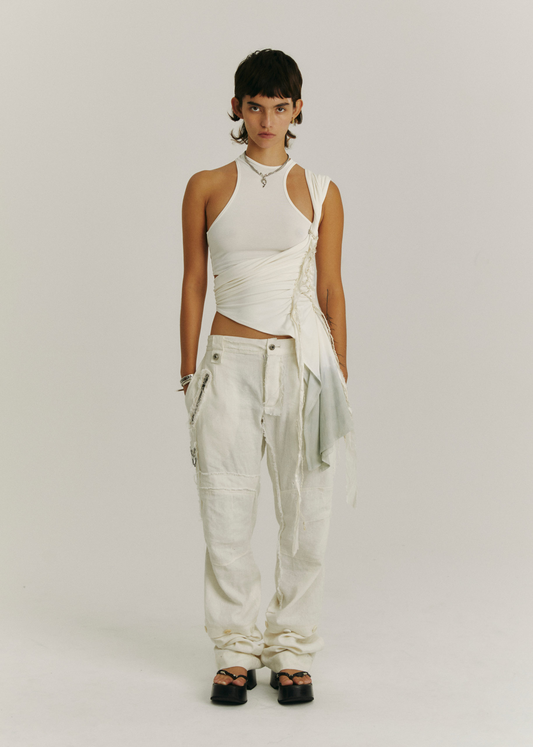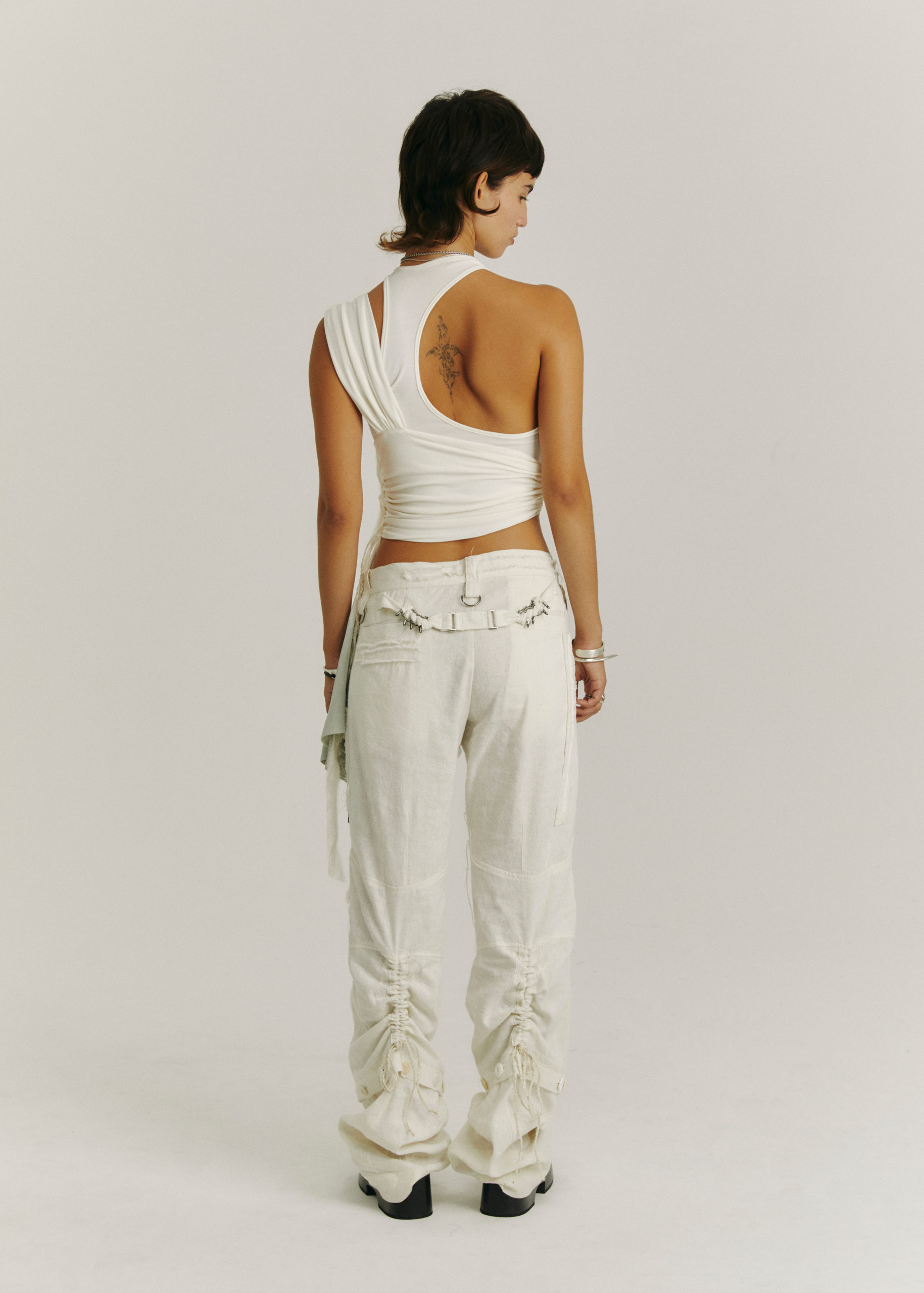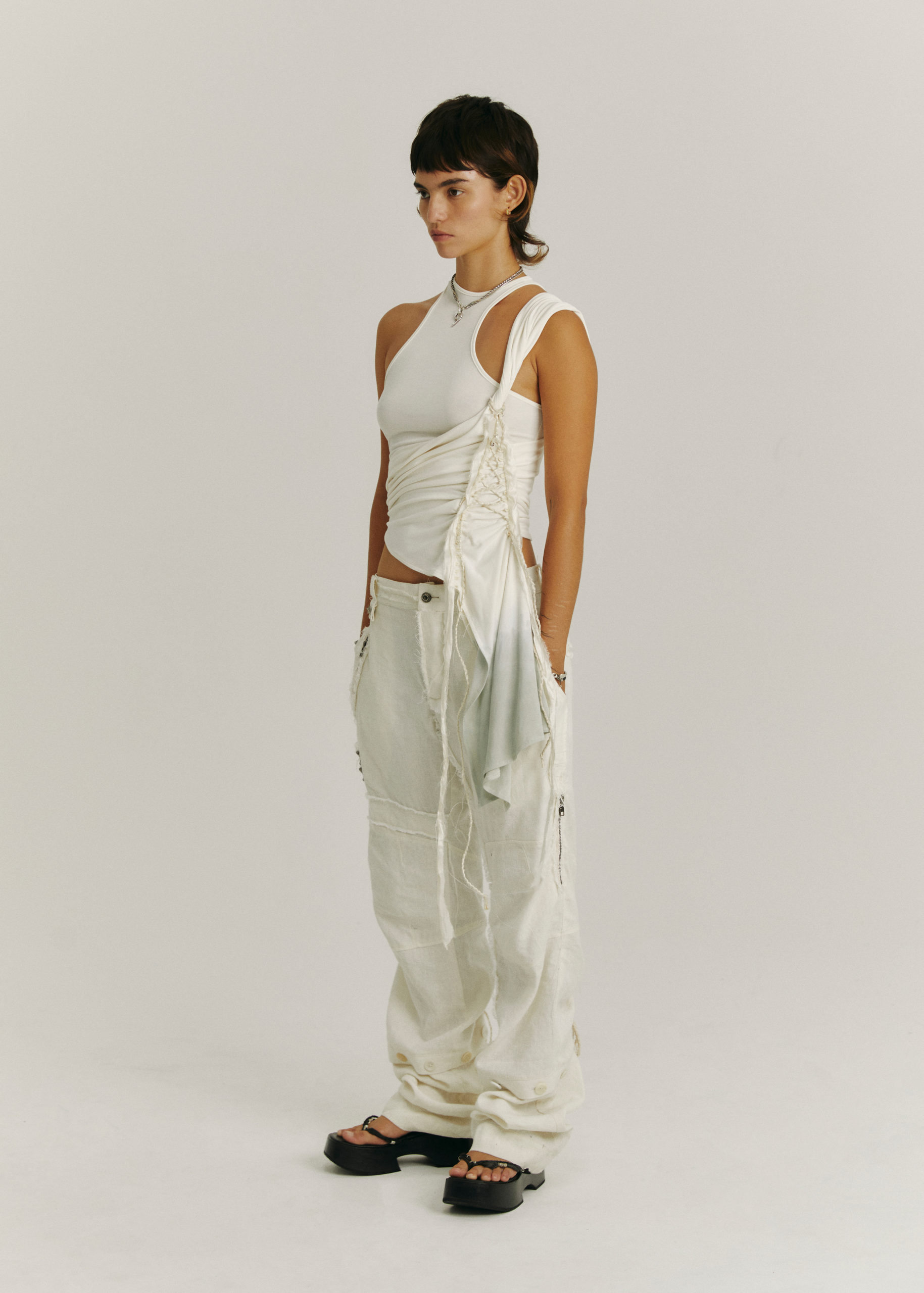 HAND-DYED, DOUBLE LAYER, CAN BE WORN SEPARATELY, SINGLE SHOULDER AND SHIRRING DETAIL AT WAIST