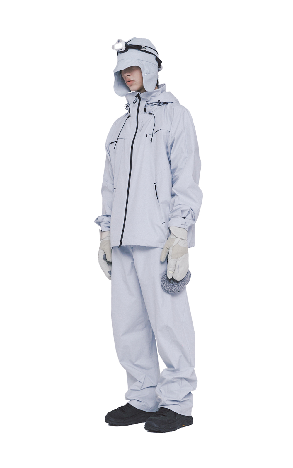 WEATHERPROOF, ZIPPERED POCKETS WITH SCREEN PRINT DETAIL, WIDE LEG.