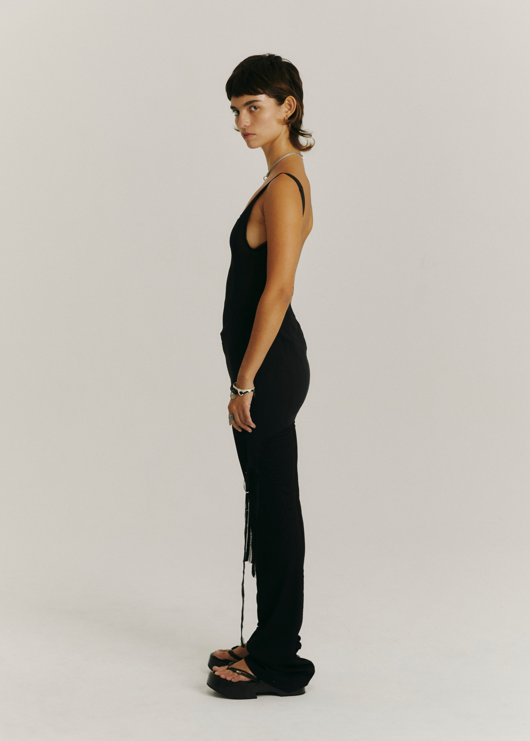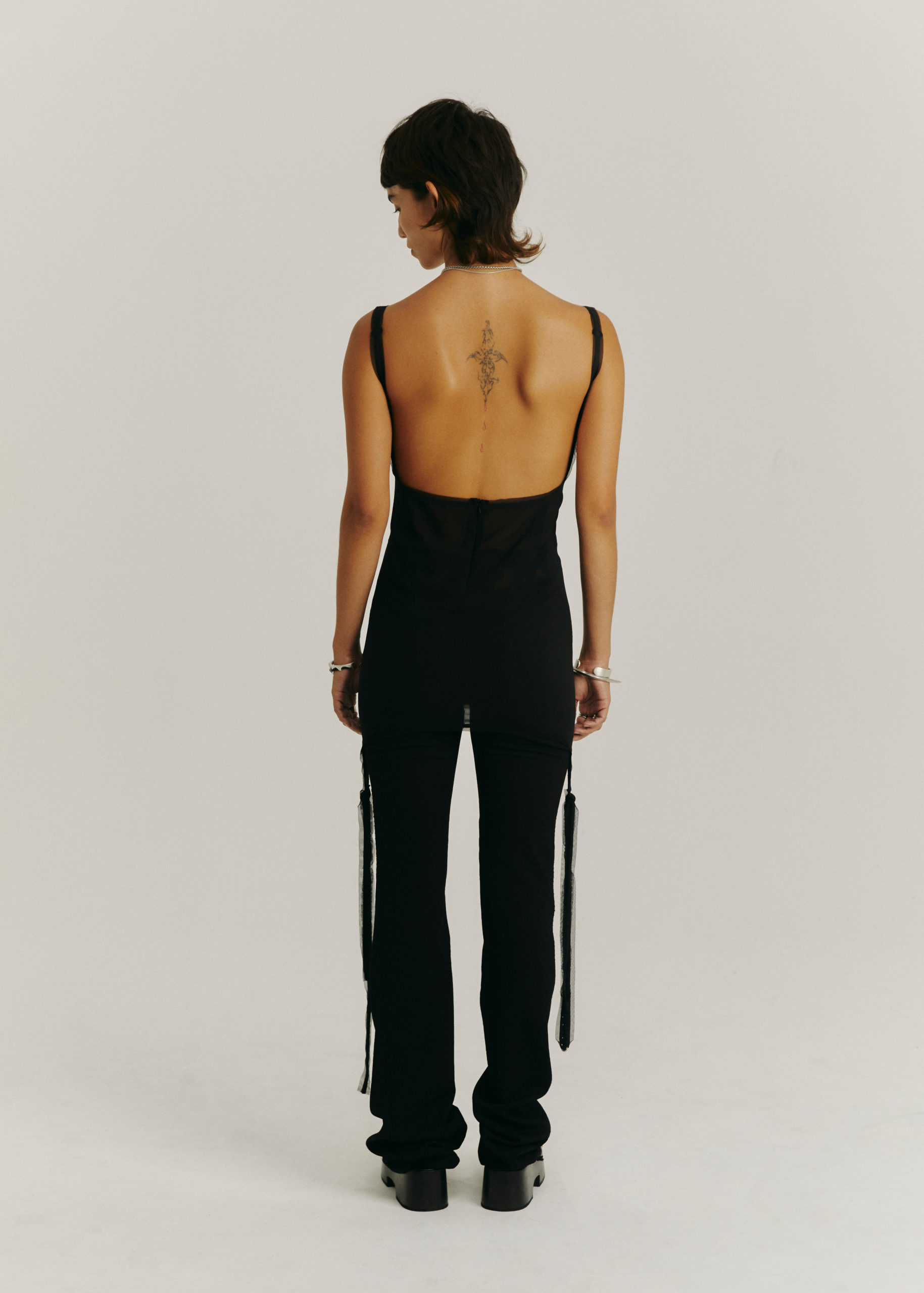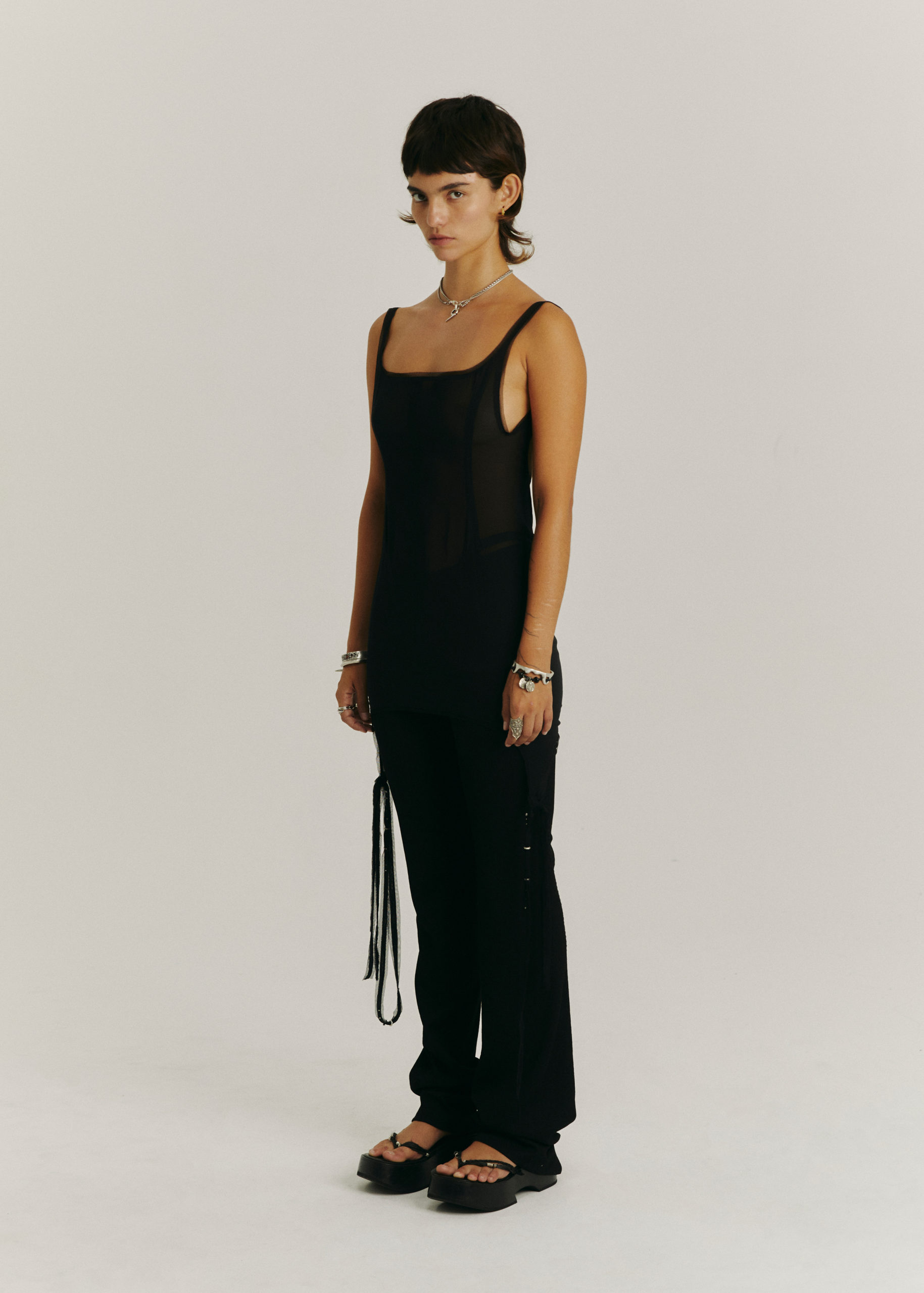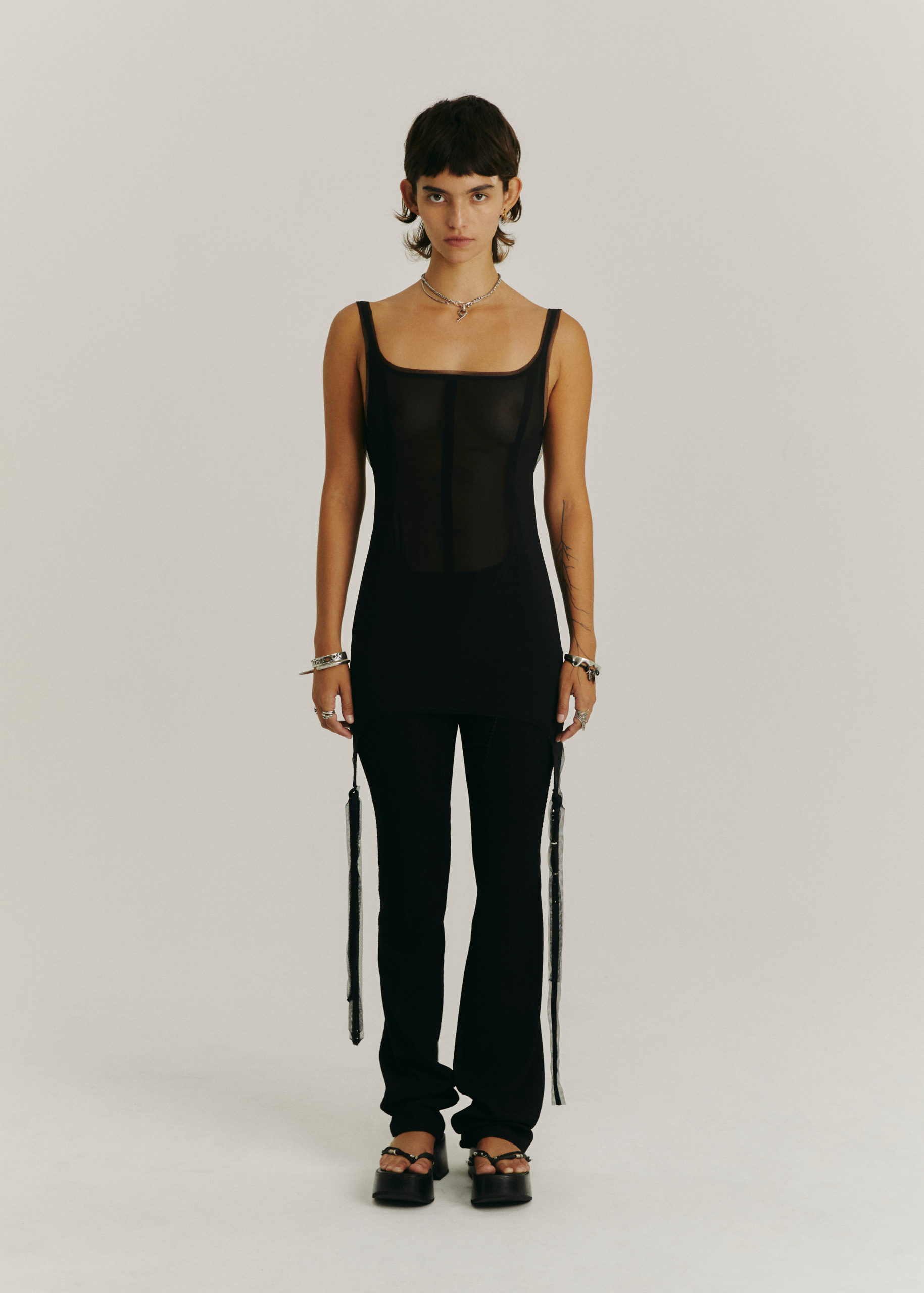 SEMI-SHEER MINI DRESS WITH ADJUSTABLE GARTER DETAILS.
