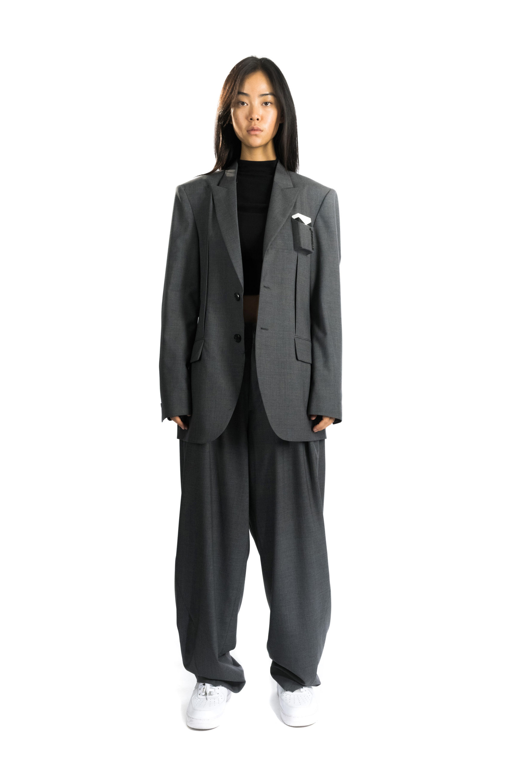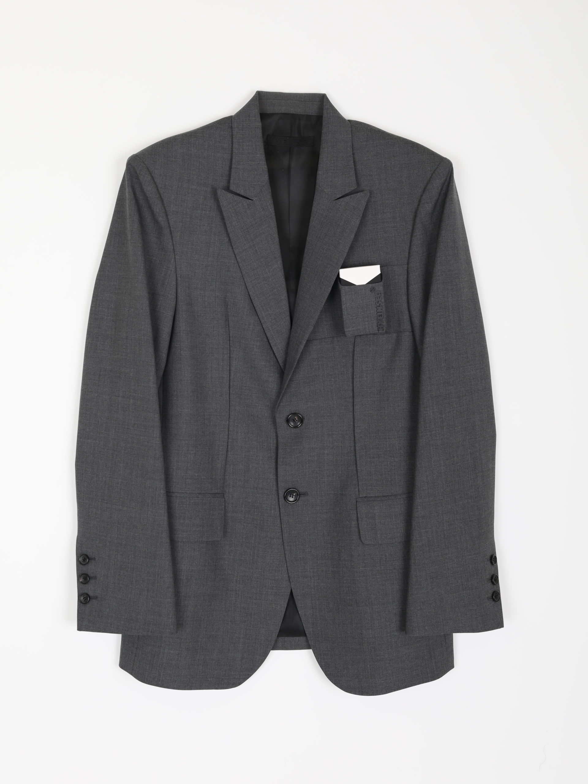 Single breasted jacket with dart detail on front and back. Flap pockets and logo hardware cigarette breast pocket. Packaging includes cigarette case.