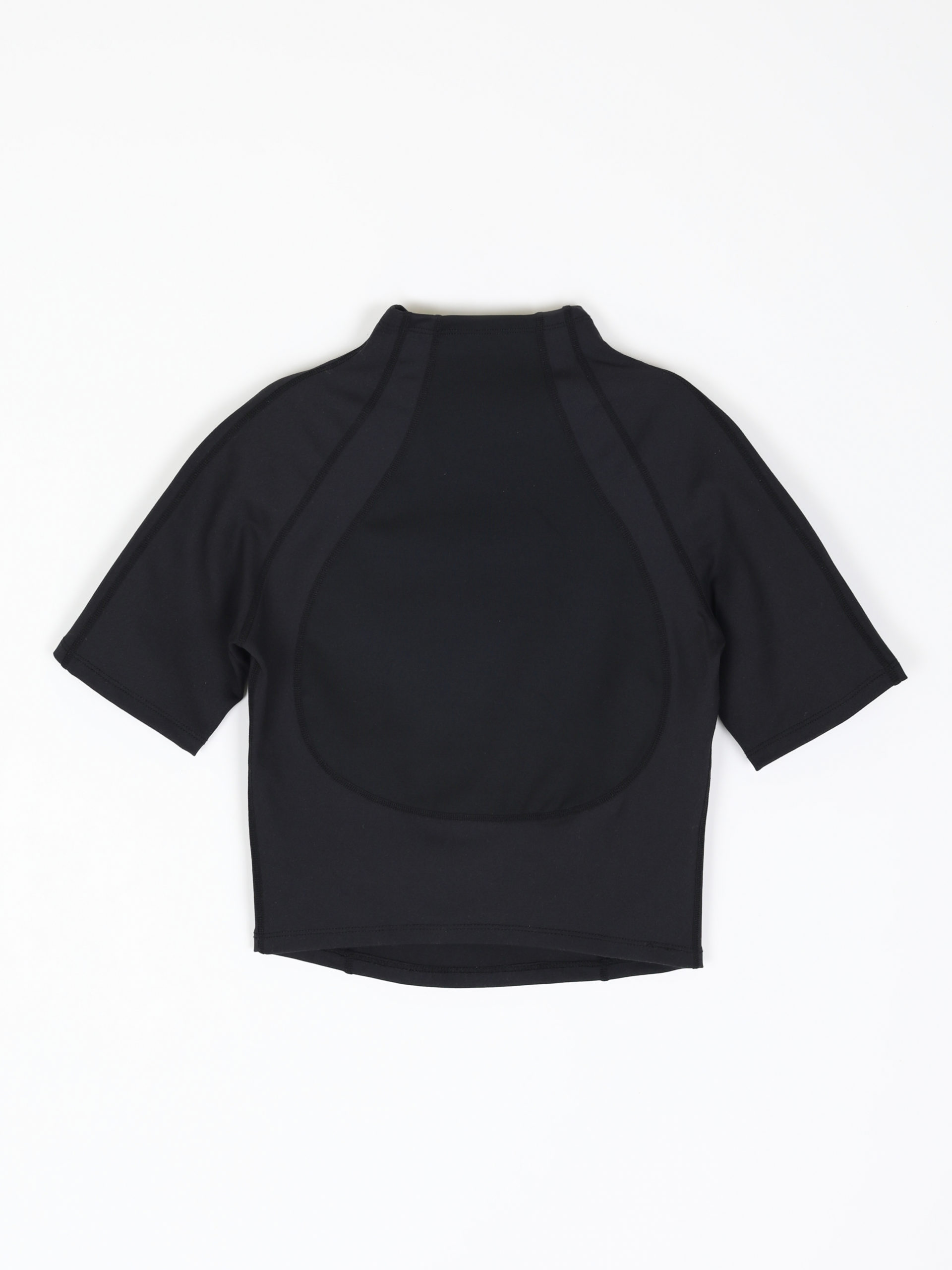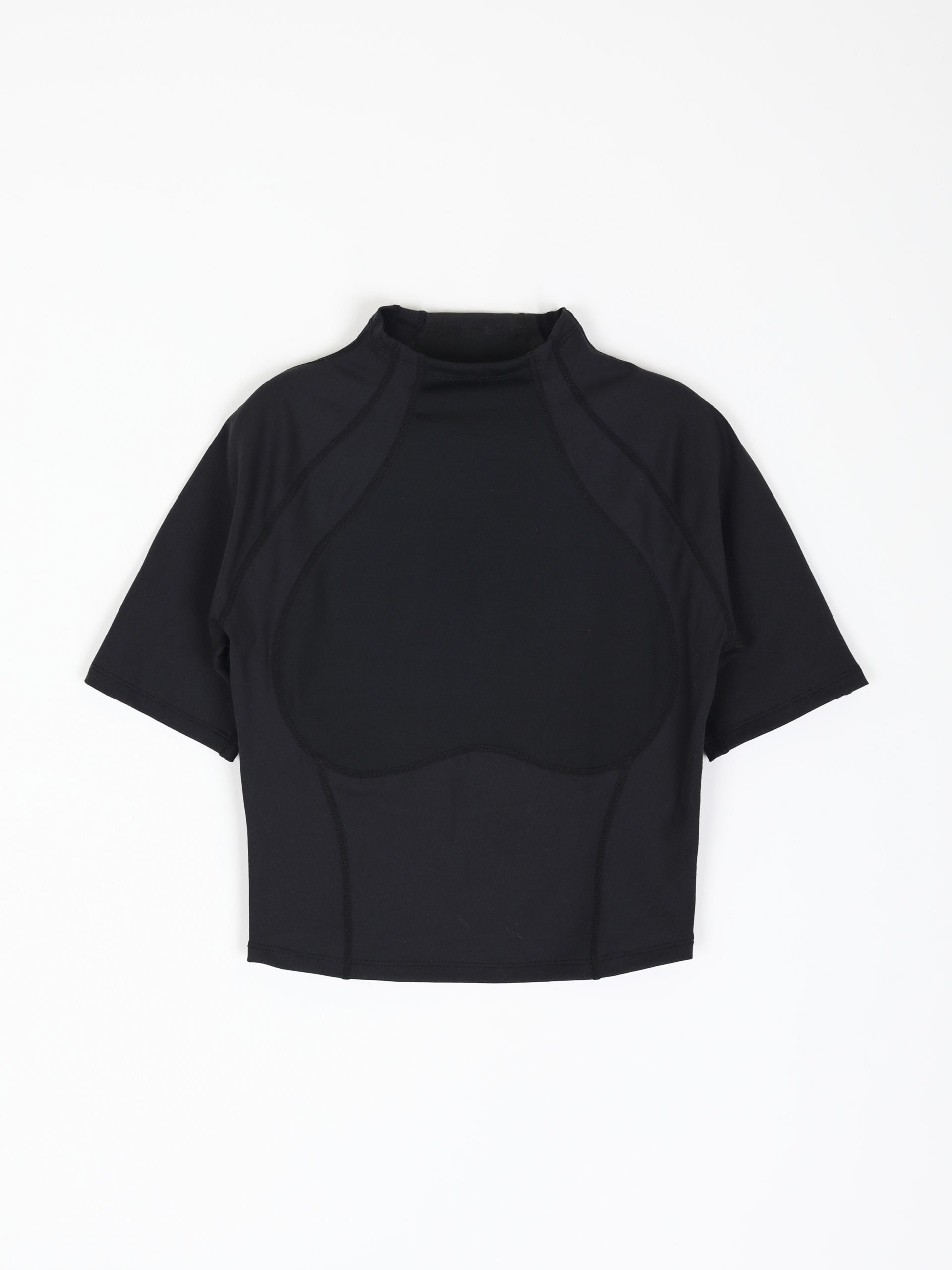 Mock neck sport top with tonal paneling.